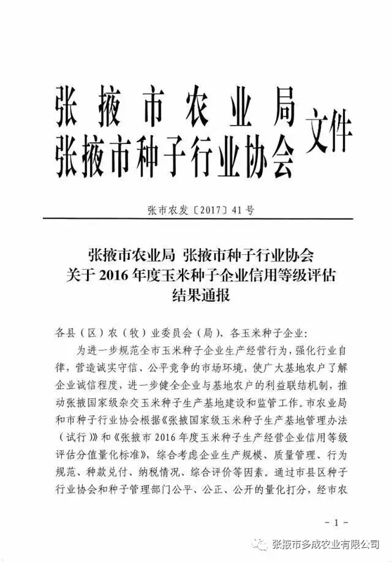 | 熱烈祝賀張掖市多成農(nóng)業(yè)有限公司被評(píng)為2017年度信用等級(jí)AAA級(jí)企業(yè)!! | ||
